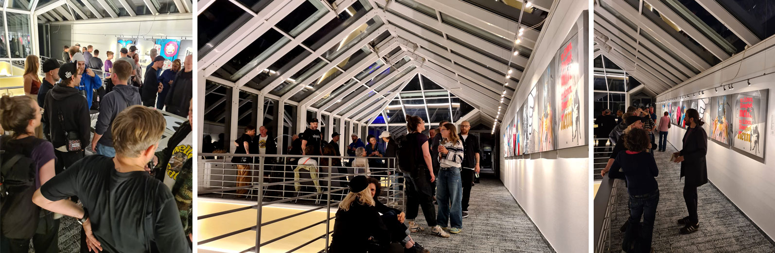 I got this space from one of my collectors for a few months. „Play with it – if you like. Make it a vibrant, artsy place. I trust you and your eye“ she said. Whow, amazing, stunning, a whole lot of work and – responsibility on my/our shoulders. We made it. We means my friend and fellow artist PISA73, musician FEINDSOUL and myself. We opened doors on February 1st with a boom. Many, many people came, happy faces all around. A beautiful collection of PISA73’s works alongside quite a bunch of works of mine, Christian Rothenhagen/deerBLN.